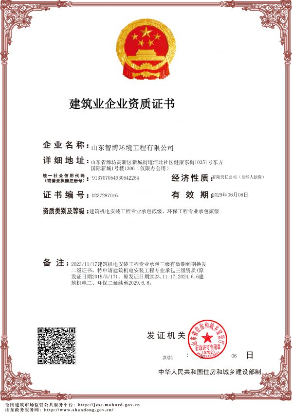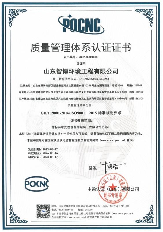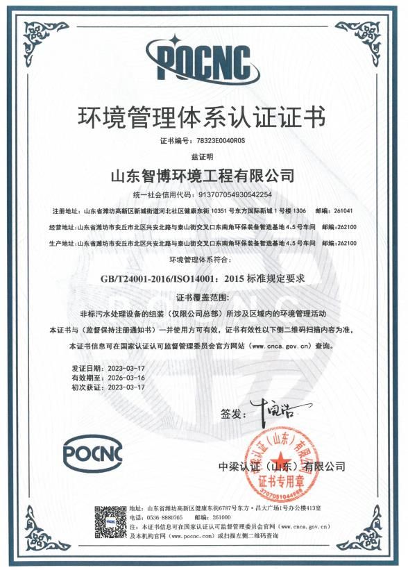 山東智博環(huán)境工程有限公司是一家集科技研發(fā)、設(shè)計(jì)、安裝調(diào)試、施工承包、工程運(yùn)營服務(wù)為一體的綜合性環(huán)保科技公司,主要業(yè)務(wù)包括污水治理、廢氣治理、軟化水處理等,具備一整套先進(jìn)的實(shí)驗(yàn)設(shè)備和質(zhì)量管理控制體系。